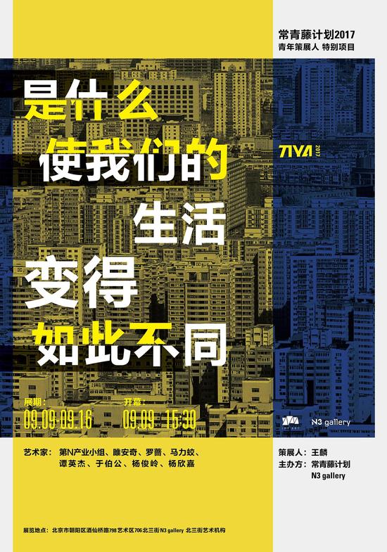 “是什么使我们的生活变得如此不同”是“常青藤计划2017青年策展人项目”增设的特别展览项目,借以对青年策展人进行持续追踪与合作。“青年策展人项目”是2016年常青藤计划在“中国青年艺术家年展”之外推出的全新项目,以项目制的方式面向国内外青年策展人征集展览方案,通过评委会评选,最终选择出优秀的进行实现,和青年策展人一起将艺术构想及学术计划变成展览现实。2017年,常青藤计划持续推出青年策展人项目,并为入选者提供更为专项细致的助推服务。