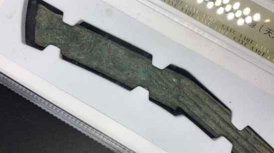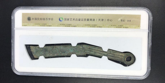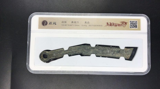 封装战国燕明刀,经过中国民俗钱币学会鉴定,由国家艺术品鉴证质量溯源(天津)中心封装备案。