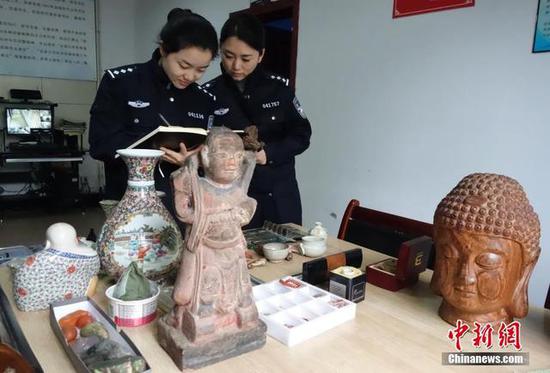4月11日,四川乐山,警方在一处收赃窝点起获的玉器。此前,乐山市中区警方打掉一作案60余起的入室盗窃团伙以及收赃人,现场起获古玩字画、珠宝玉器、古钱币、瓷器等赃物数千件,堪比“博物馆”。目前,该案仍在深挖中。