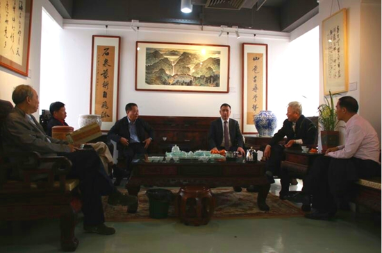 前岸国际酒店董事长曹日红先生希望大家能更多关注中华传统文化。他介绍说,前岸国际艺术中心是为响应深圳市文化创新精神,建设文化强市的号召,旨在构建一个深圳艺术家与国内外艺术家交流、分享和互相学习的平台。中心集东方啸、扬帆、孟繁柯、张晓秋、黄文耕等知名艺术家的工作室,由中法中澳文化艺术交流中心名誉主席、深圳美术馆高级美术师、深圳女画家协会名誉会长乔红担任名誉主席。