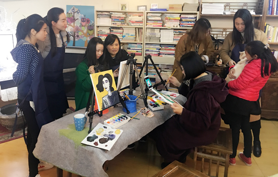 油画,一项充满乐趣的艺术,它可以装点生活,亦可赠与师友、陶冶情操。活动放在每周三晚7:00-10:00,周中的晚上,让一周的工作显得不那么紧张。活动的地点在一个小型图书馆里,这里有三万多册藏书,有水吧、有烘焙教室、有画室。在这里呆上一下午一晚上也不会无聊。姐妹们的约会往往就是吃饭、看电影、喝咖啡等等,为什么不换一种交流方式呢,画小画儿、聊聊天儿、结交新朋友,是我创办这个活动的初衷。