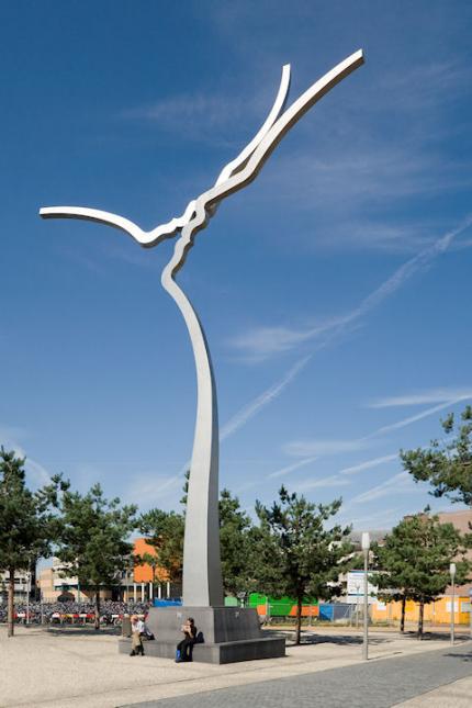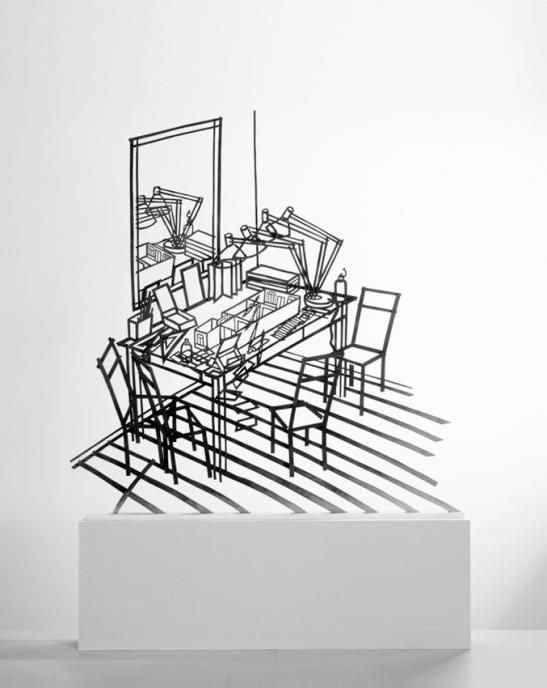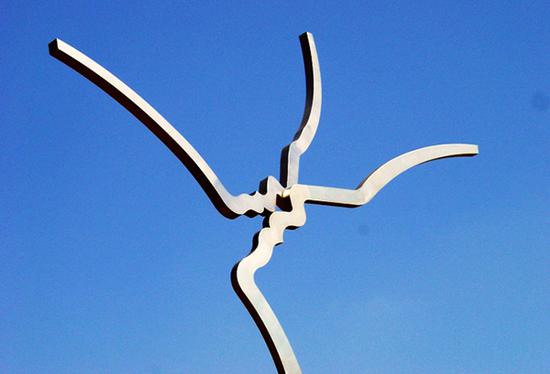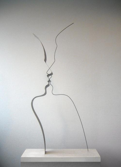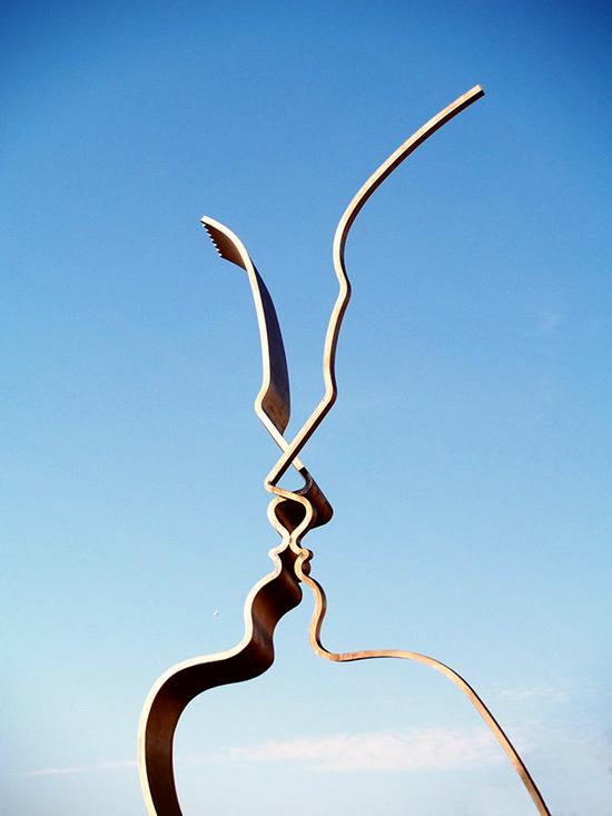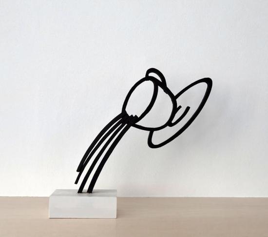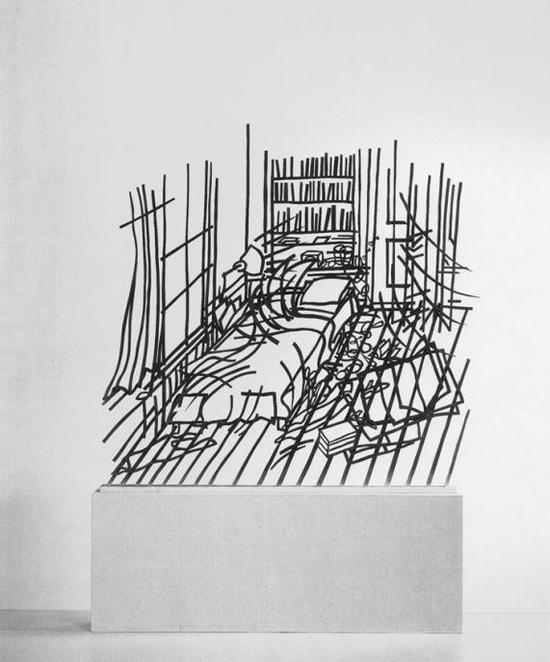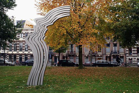 乍一看这些只有线条的图片,你一定以为这只是画在纸上教授儿童的简笔画,如果你仔细深入的去看这些作品,或者一直往下看的话,你一定会惊呼:原来这是立体雕塑,简直太不可思议了!到这里小编就不再卖关子了,这些看起来像是简笔画的雕塑(没错,这就是雕塑)就是荷兰艺术家Jeroen Henneman的杰作了,多才多艺的他曾就读于阿姆斯特丹美术学院,随后前往比利时,法国,瑞士和美国住了很长一段时间,他的作品被称为“站起来的图纸”,那是因为看起来很简单的线条雕塑,可不是用线条简简单单做成的立体雕塑,他真的只是平面,只不过利用绘画中的透视感直接将“平面图”再现出来,造成了一种“立体”的错视觉,看起来相当有趣呢!他最著名的作品就是2006年为纪念梵高而创作的纪念碑“呐喊”以及“亲吻”。