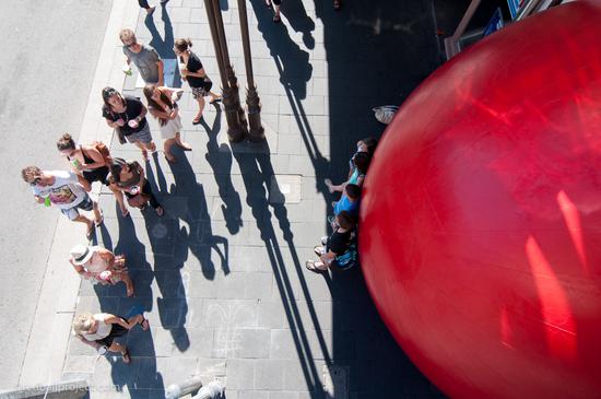 出生在芝加哥,立足于纽约的艺术家Kurt Perschke 的大红球艺术项目,曾在美洲,欧洲,澳洲,亚洲等世界上多个国家和地区出现,并获得了众多奖项及媒体的关注。艺术家Kurt Perschke 认为,作为一个艺术家,应该为日常生活加入催化剂。表面看这个项目吸引人,俏皮具有魅力,实际上,他的真正力量是打开一个接口,让人们想象并参与其中,其魅力跨越不同年龄,语言和文化,让人们共同参与。大红球艺术项目是一个在世界各地旅行的项目,探索者世界各地城市的建筑景观以及历史。非常直接具备冲击力的大红球,你会想要把它放在哪里?