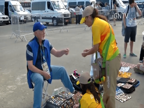 (纪念章收藏家 西德尼·马兰士):“我收藏的纪念章有1.4万枚,另外还有近1万枚专门用来和人交换,这次我到里约带了大概一千枚,迄今为止我已经和别人交换了五万到六万次,有时候你手上有他们非常想要的纪念章,但是他们手里的东西你已经有了,我还是会和他们交换,他们得到了想要的东西,我再替换掉损失的那枚纪念章,这叫做频繁交易,我喜欢这么干,有些人如果得不到自己想要的东西,就拒绝和人交换,宁可把它卖钱或者自己留着,我不会把多余的藏品卖掉,我更喜欢社交,我喜欢通过交换认识新的朋友。”