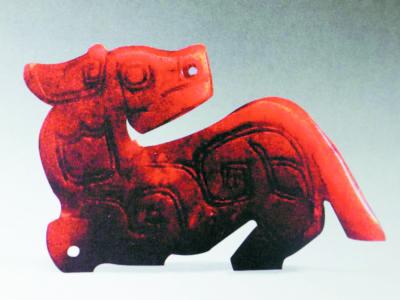 商周时期,玉器为皇家所专有专用。此时,玉器除了祭祀、礼仪陈设之用外,还被用来衣着的装饰以表达玉器主人的身份、地位。如,玉环、玉管、玉珠、玉虎、玉蝉、玉兔等,玉狗的形象鲜见,仅在商代殷墟妇好墓出土了一件狗纹饰的片状玉器。这件玉器可能是挂在服装上的装饰物。玉片上的粗线条勾勒出狗的形象。这件玉狗片饰有可能是中国最早的玉狗造型了。