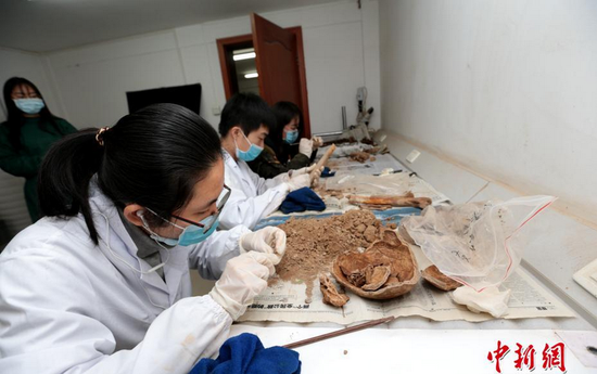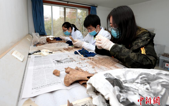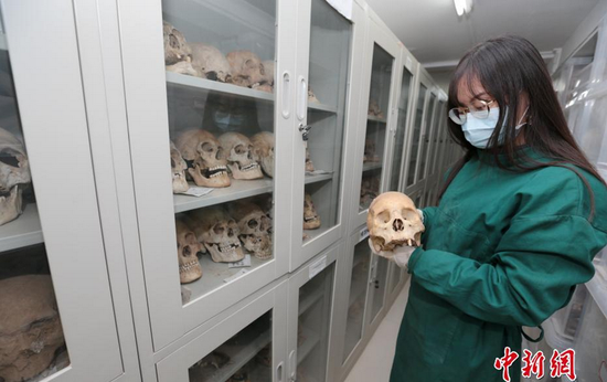 11月20日,一名学生在标本库中查找人骨。位于陕西西安的西北大学文化遗产学院考古人类学实验室,其标本库内存放有5000余具古代人类的人骨标本,时期从新石器时代至明清,出土自陕西、青海、云南等省。中新社记者 张远 摄