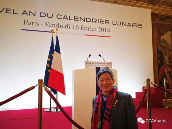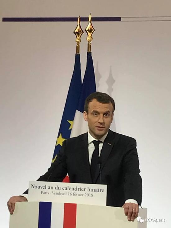 2018年2月16日农历春节正月初一,法国总统马克龙于爱丽舍宫总统府举办春节招待酒会,向广大旅法亚裔移民拜年,中国驻法大使翟隽、亚洲多国驻法使节及亚裔各界代表500余人出席活动。