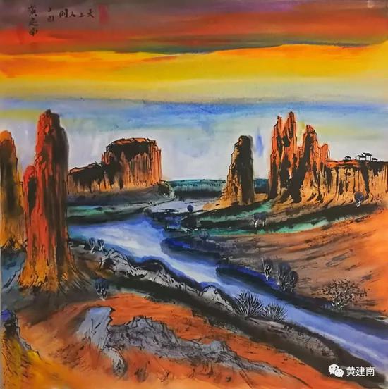 黄建南先生早期历时九年步行三万八千多公里,走遍大江南北、深入大漠乡村城镇体验生活、写生作画。