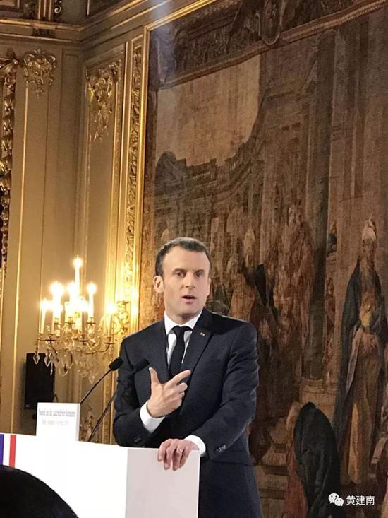 胡润艺术家排行榜第五名的著名艺术家黄建南应法国总统马克龙邀请,出席爱丽舍总统府2018春节招待酒会。