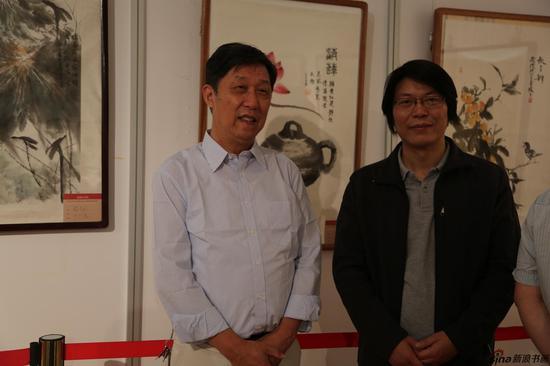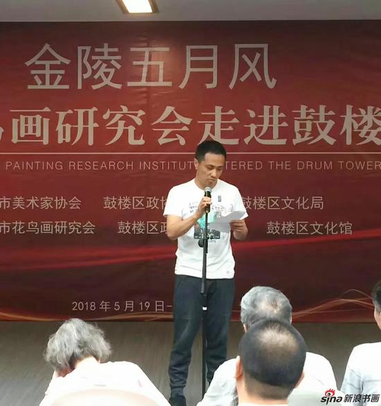 更斯艺术馆馆长、南京市花鸟画研究会常务理事王昊先生主持开幕式主要人物观展: