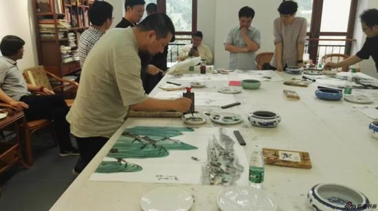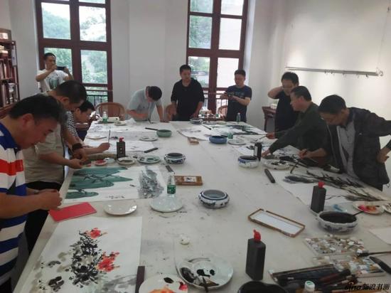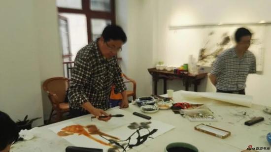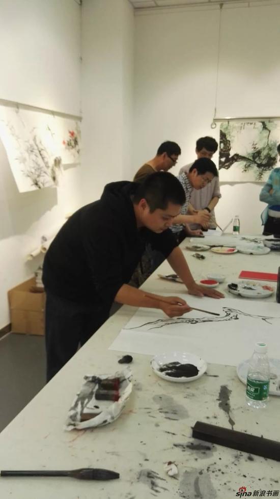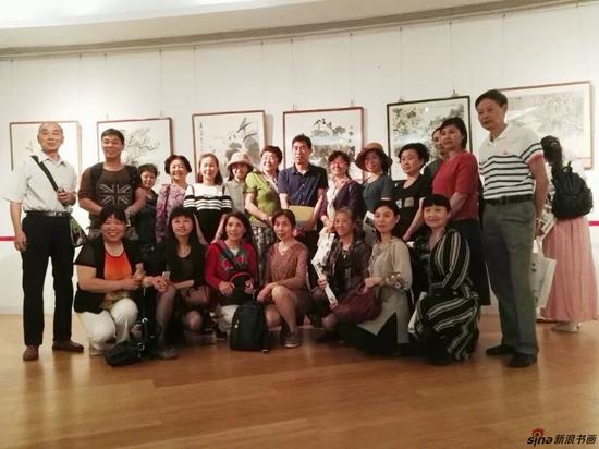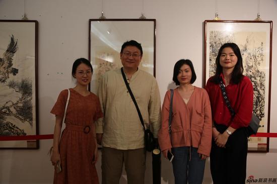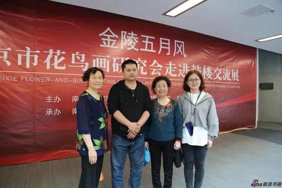 东南大学副教授硕导、南京市花鸟画研究会常务理事程万里先生和参展艺术家合影