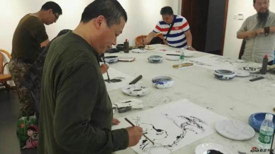 原南京市美术家协会秘书长方澄清先生与参展艺术家们交流